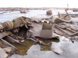 waves breaking over her. One of